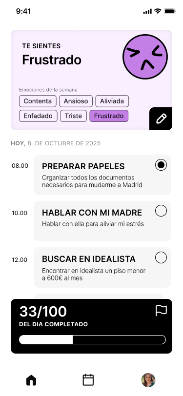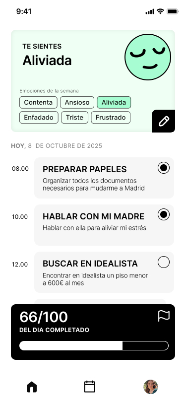 Allows users to plan and prioritize daily tasks—such as administrative procedures, apartment visits, or paperwork—with flexible reminders adapted to each user’s pace.